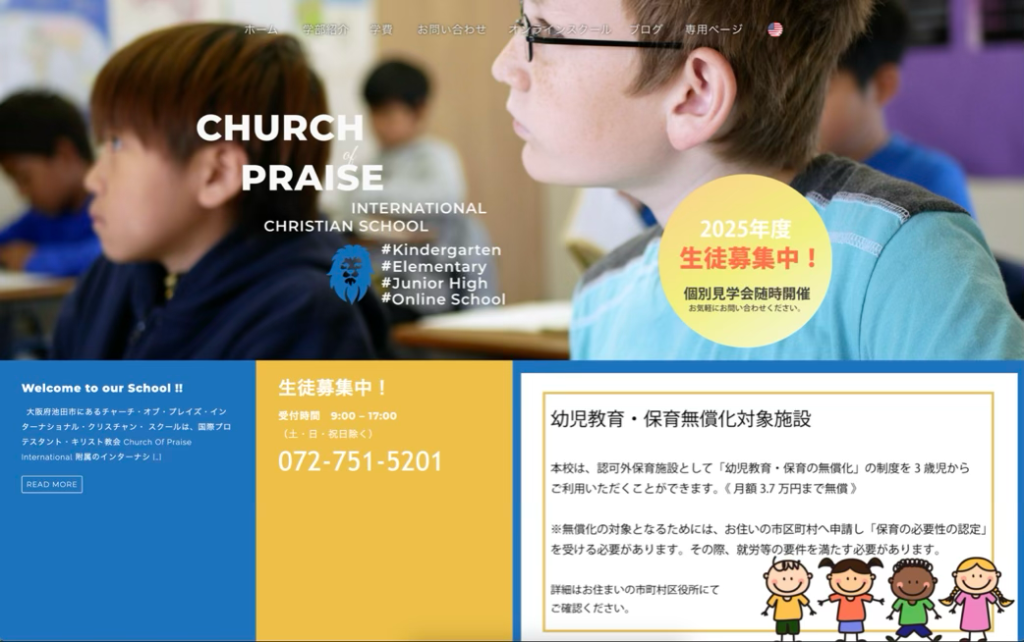チャーチ・オブ・プレイス・インターナショナル・クリスチャンスクール(COPICS)は、2004年に池田市で開校したインターナショナルスクールです。英語と日本語を学べるバイリンガルスクールとして、生徒たちが日本と世界で活躍できるように教育を行ってきました。